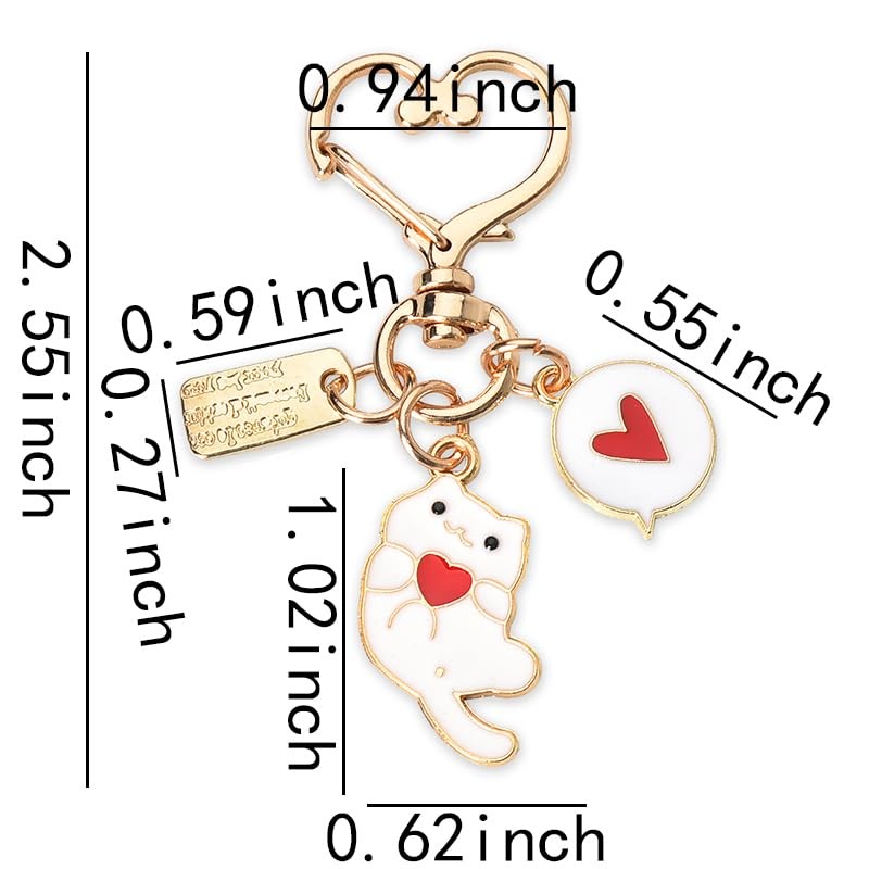 1.Cute Cat Pendant Key Rings: The cat charm key ring consists of a white cat charm and a heart charm, and it has a heart shaped clip key ring which makes it easily accessible and detachable, best cute kitty keychains for cat owners and cat lovers for birthday christmas or as cat themed party favors