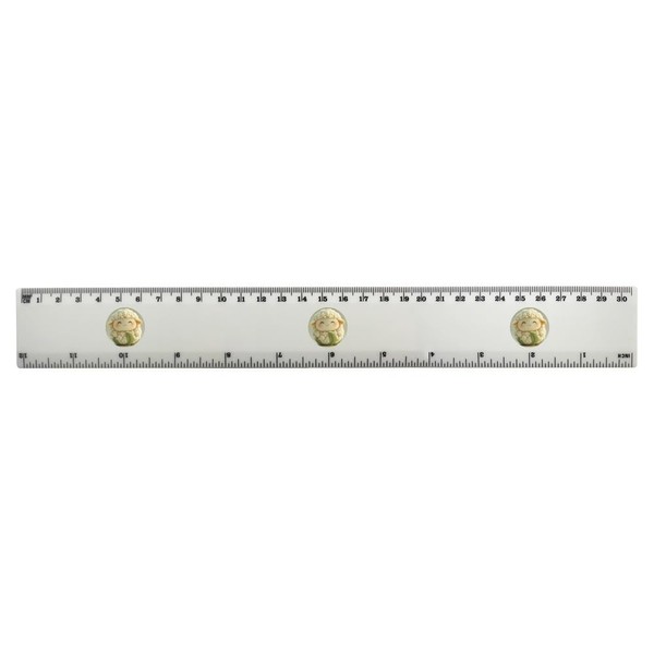 A 30cm (12') white plastic ruler with both metric and imperial units. It has a sloped edge for accuracy when measuring.