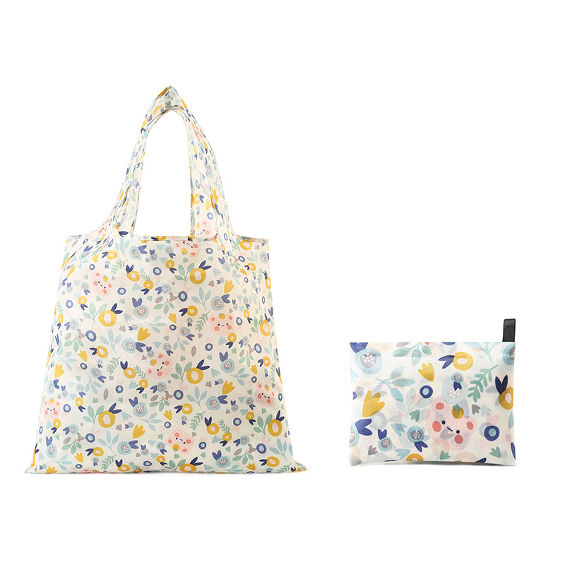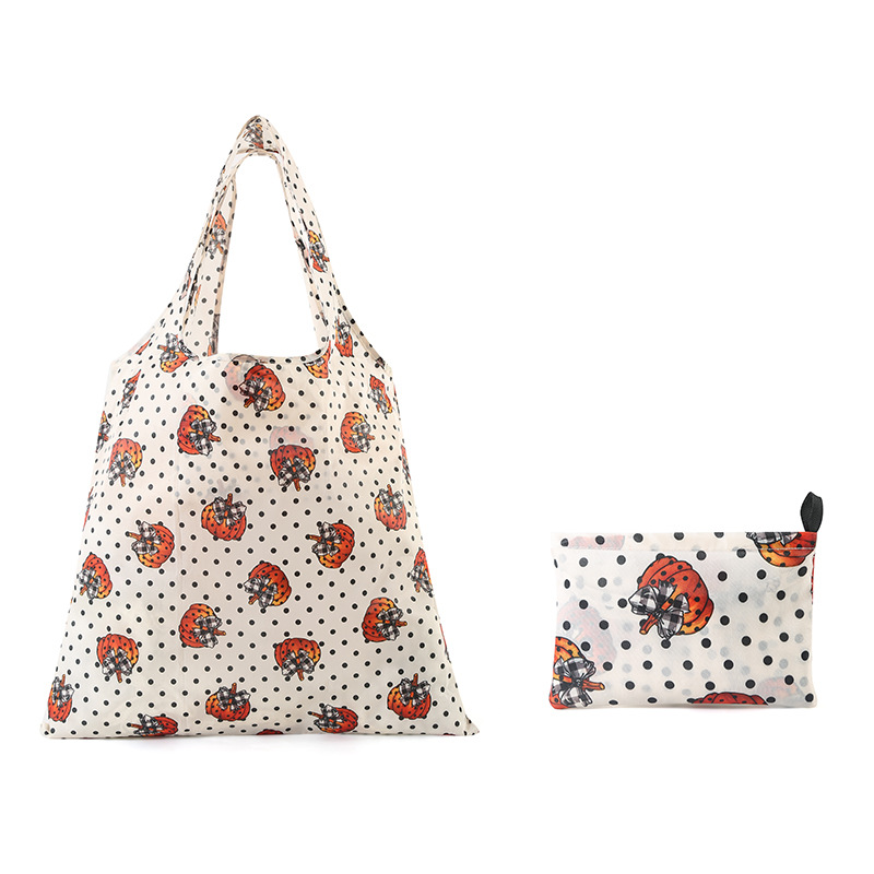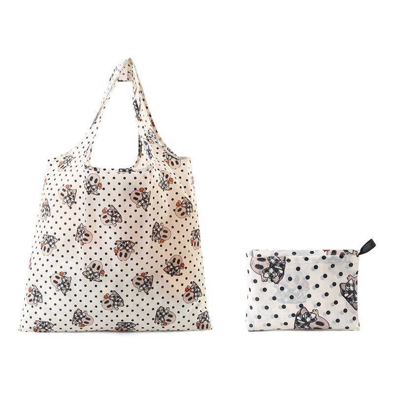 Cute Character Pattern Foldable Tote Shopper Bag with Mini Pouch (R11) One Size/Wave Point Ghost 20ea