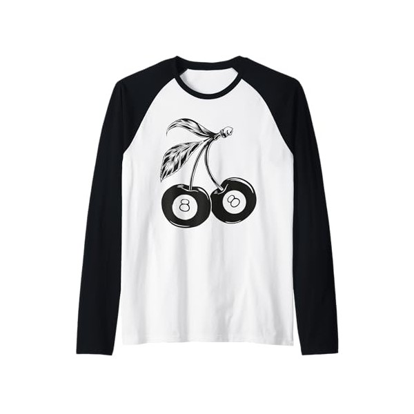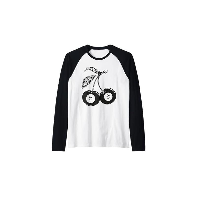 Cute Cherri 8 Billiard Ball Pool Cherry Fruit Pattern Black Raglan Baseball Tee