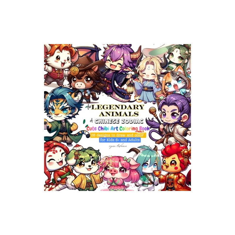 CUTE CHIBI ART COLORING BOOK VOL.1: THE LEGENDARY ANIMALS OF CHINESE ZODIAC: 26 DESIGNS TO DRAW AND COLOR FOR KIDS 6+ AND ADULTS | HIGH QUALITY PRINTS AND COLOR ARTS