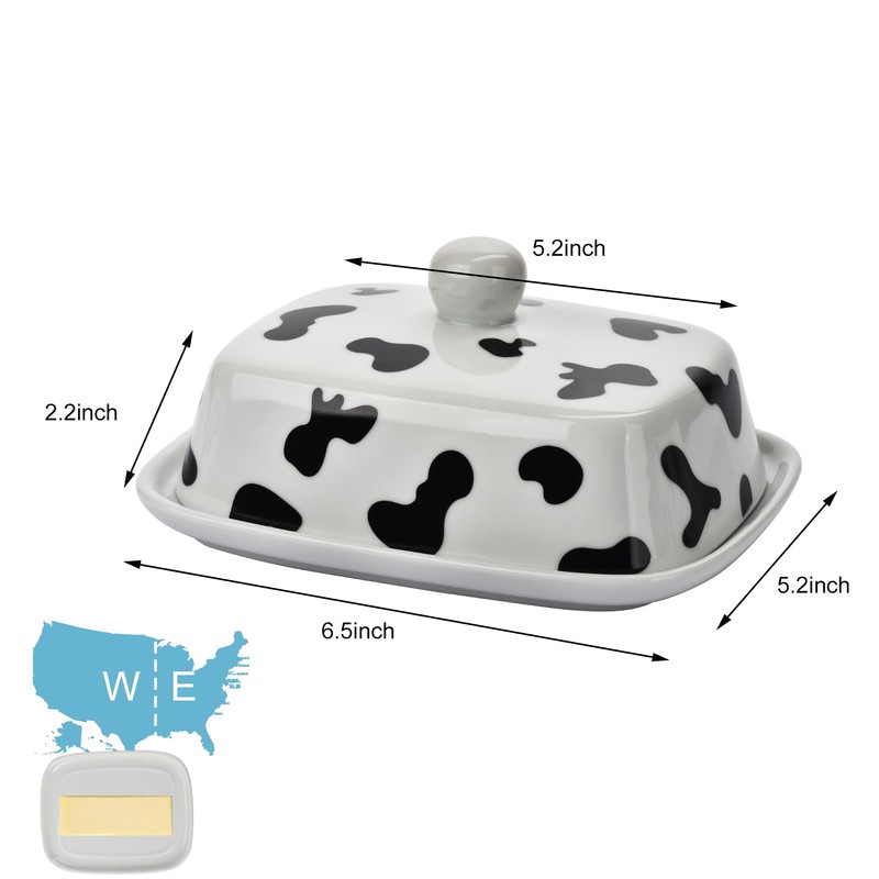 - 【A thoughtful gift for butter enthusiasts】levate your kitchen with our farmhouse style butter dish, a perfect blend of practicality and aesthetics. Whether you keep it on the counter or in the refrigerator, this butter dish with a unique cow-patterned design is sure to catch the eye of your guests. this farmhouse style butter dish makes a great gift for Thanksgiving Day or Christmas