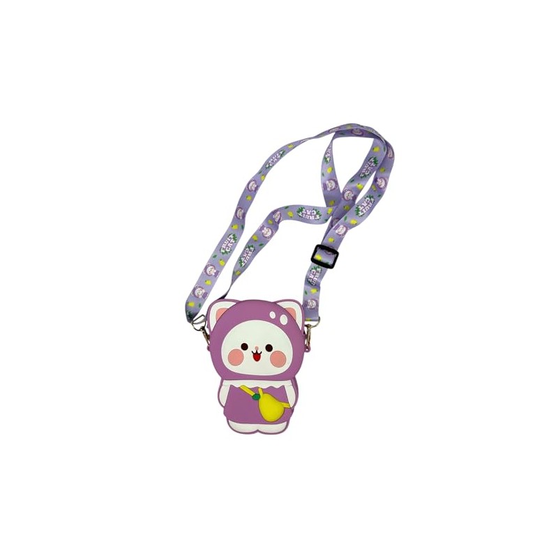 Cute Crossbody Bag with Design, Cartoon Purse with Decorative Lanyard (Purple Cat)
