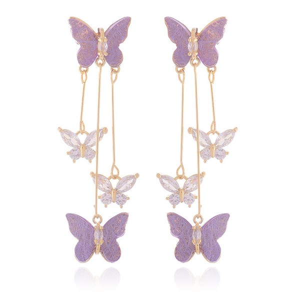 Cute Earrings Butterfly Earrings for Women Gifts Trendy Stuff Crystal Zircon Butterfly Tassel Dangle Purple Earrings Wedding Jewelry Gifts Purple Dress for Woman Outfits