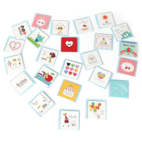 - Mini message card set includes: 24 types of mini message cards x 3 cards (72 cards total), 72 envelopes