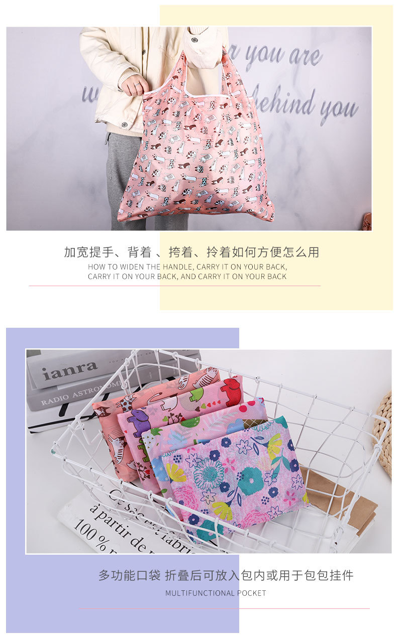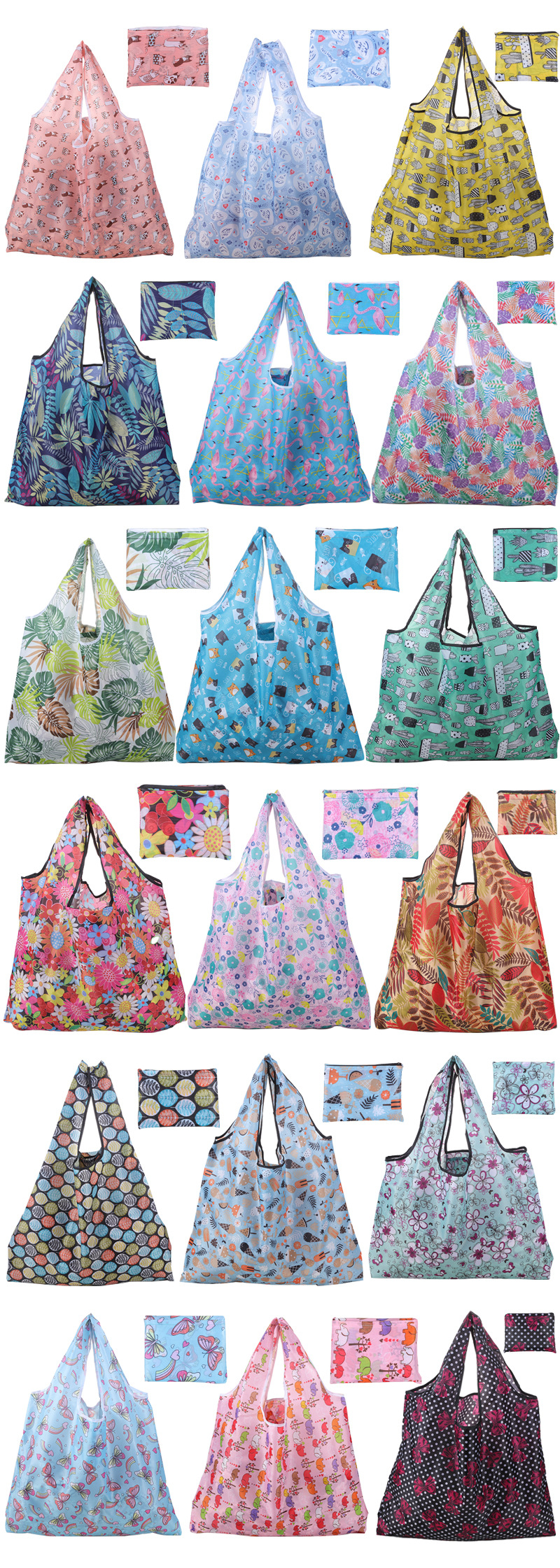Cute Figure Pattern Foldable Tote Shopper Bag & Portable Mini Pouch R34 Free Size/07 20ea