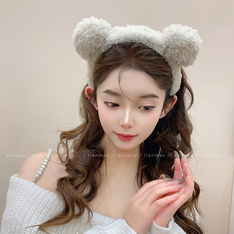 Cute Fluffy Bear Ear Headband for Women White Headband 2ea