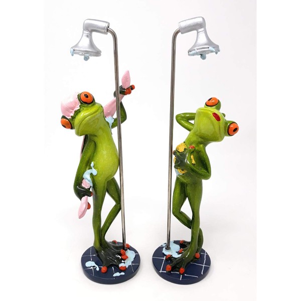 Cute Frog in the Shower with Shower Cap Decorative Figure Decorative Figure Bathroom