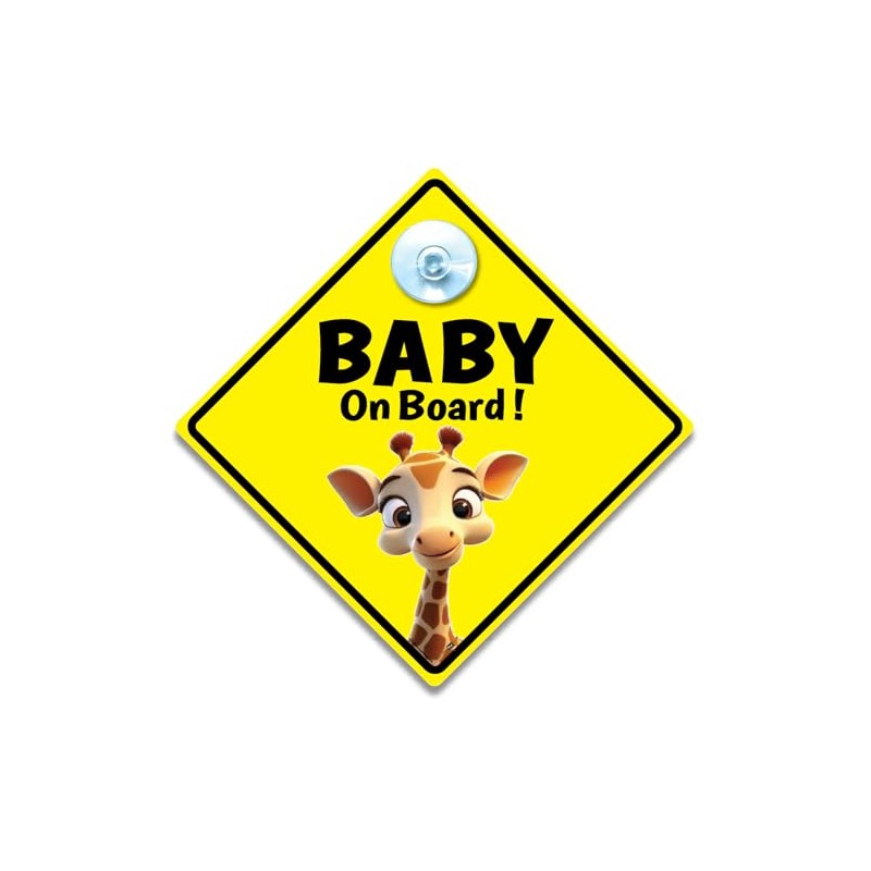 Cute Giraffe Baby on Board Autoschild 14 x 14 cm gelber Diamant Saugnapfhalterung