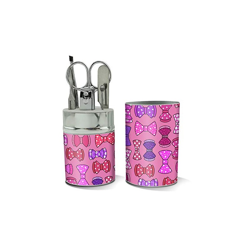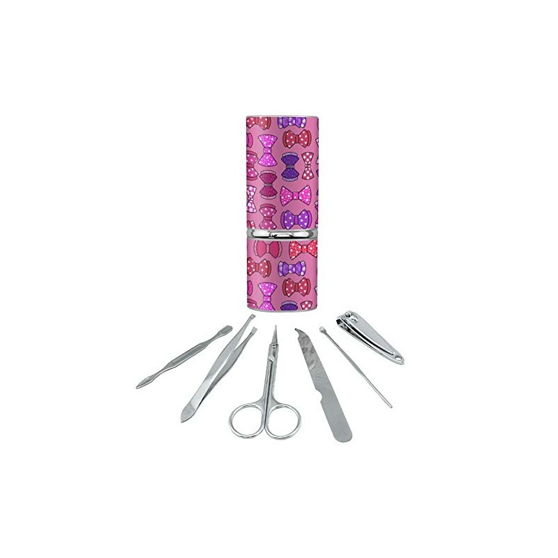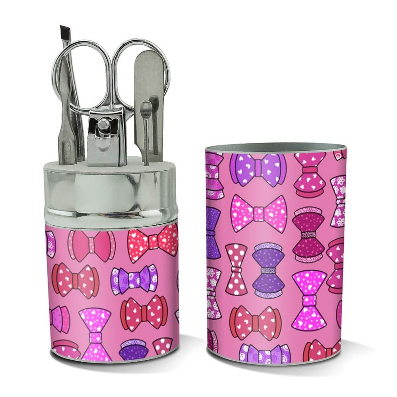 Cute Girly Pink and Purple Bows Pattern Stainless Steel Manicure Pedicure Grooming Beauty Care Travel Kit