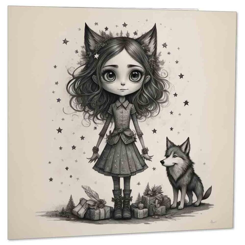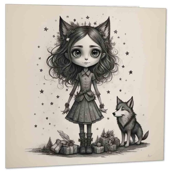 Cute Gothic Girl & Wolf Birthday Card 145 x 145mm