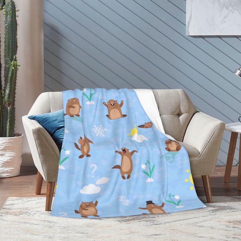 Cute Groundhog Blanket Soft Lightweight Throw Blankets Cozy Flannel Bed Throws for Sofa Couch Travel Home Room Bedroom Decor Gifts for Boys Girls Kids Adults 50"x40"