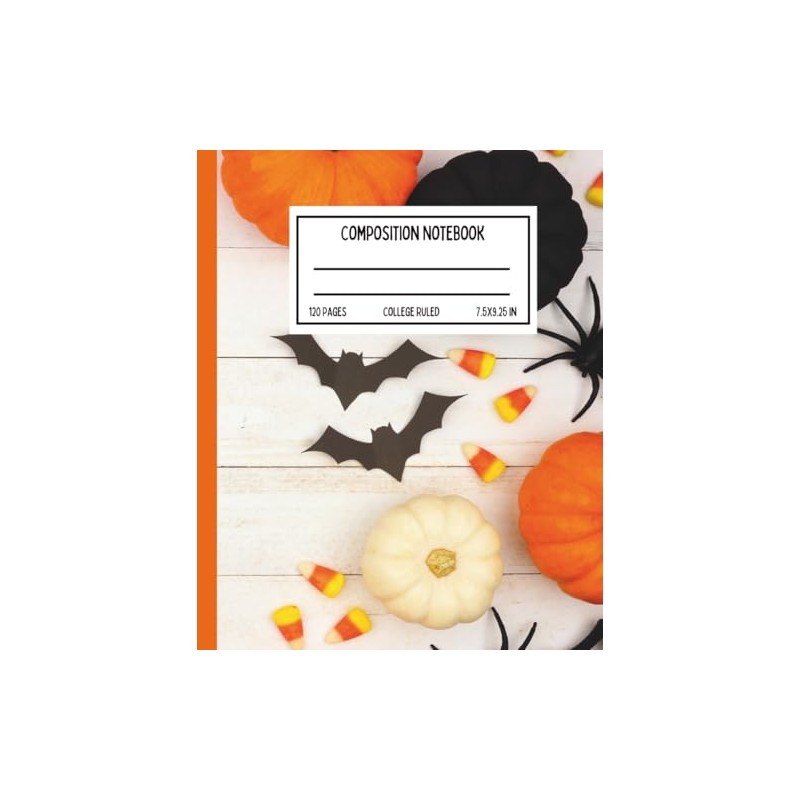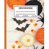 Cute Halloween Candy Corn Notebook | Rustic Pumpkin & Bat Design | 7.5x9.25 in | 120 Pages: Fall-Themed Composition Stationery with White Wood ... Notes, Journaling, or Halloween Gifting