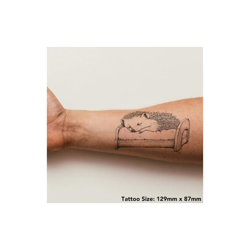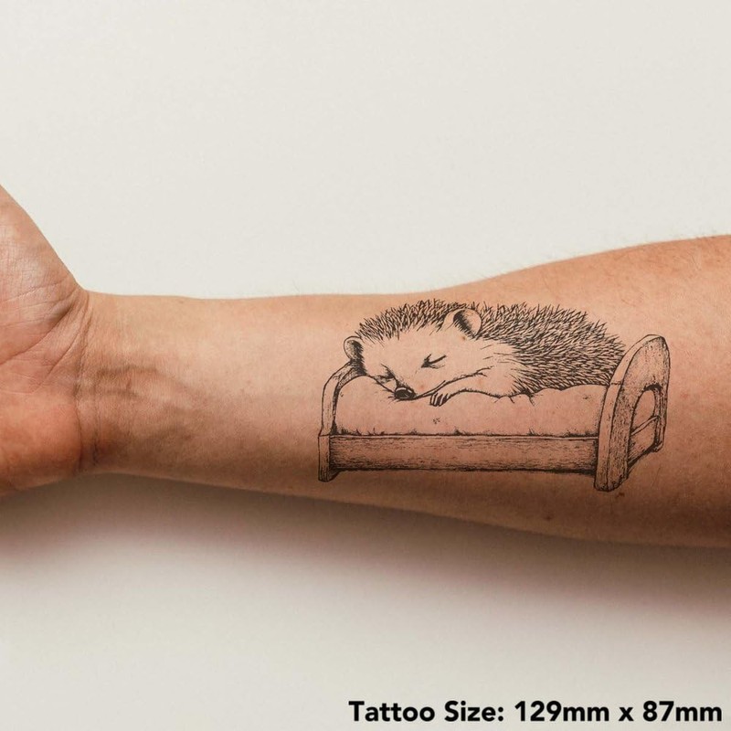 'Cute Hedgehog Sleeping' Temporary Tattoo - Water Resistant, Skin-Safe, Non-Toxic Transfer (TO00083855)