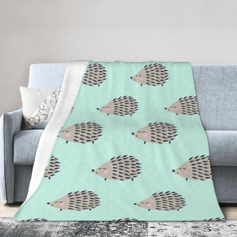 Cute Hedgehog Throw Blanket Flannel Plush Soft Warm Blankets 60"X60" for Kids Adults Gift Sofa Chair Bed Office 50x60