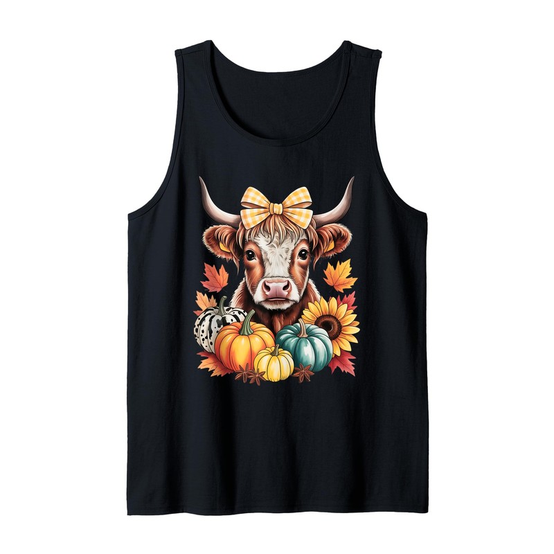 Cute Highland Cow Fall Season Pumpkin Design Gift Men Women Tank Top