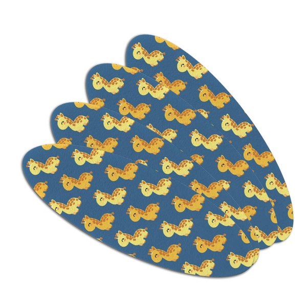 Cute Kawaii Baby Giraffes Pattern Double-Sided Oval Nail File Emery Board Set 4 Pack