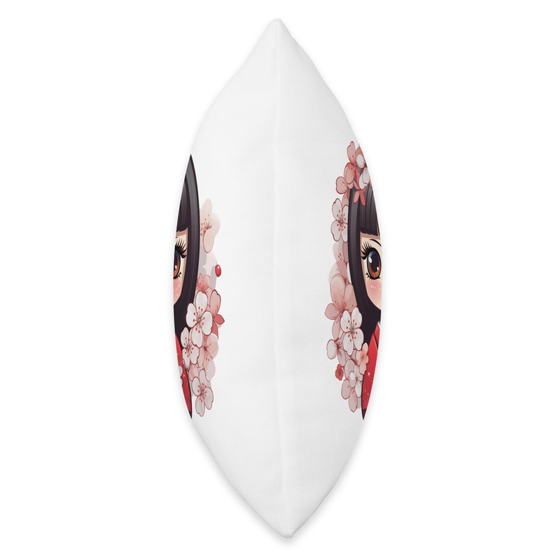 Cute Kokeshi Doll With Cherry Blossoms I Kokeshi Throw Pillow