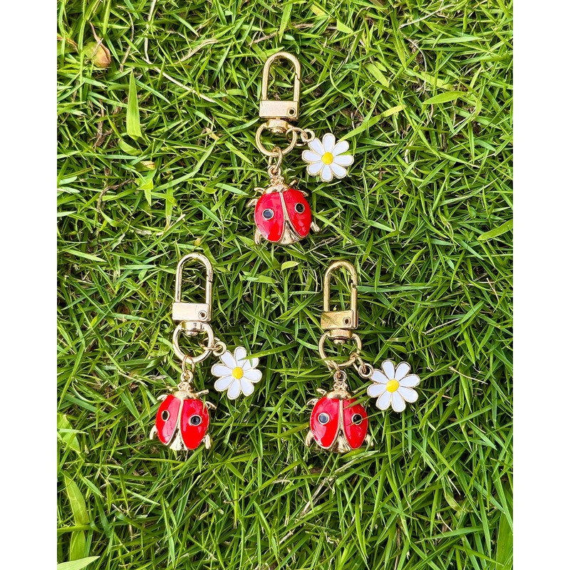 Cute Ladybug Daisy Keychain Purse Charm for Women Girls, Fun Bag Charms Accessories with Strawberry, Cherry, Cow, Bow & More Styles