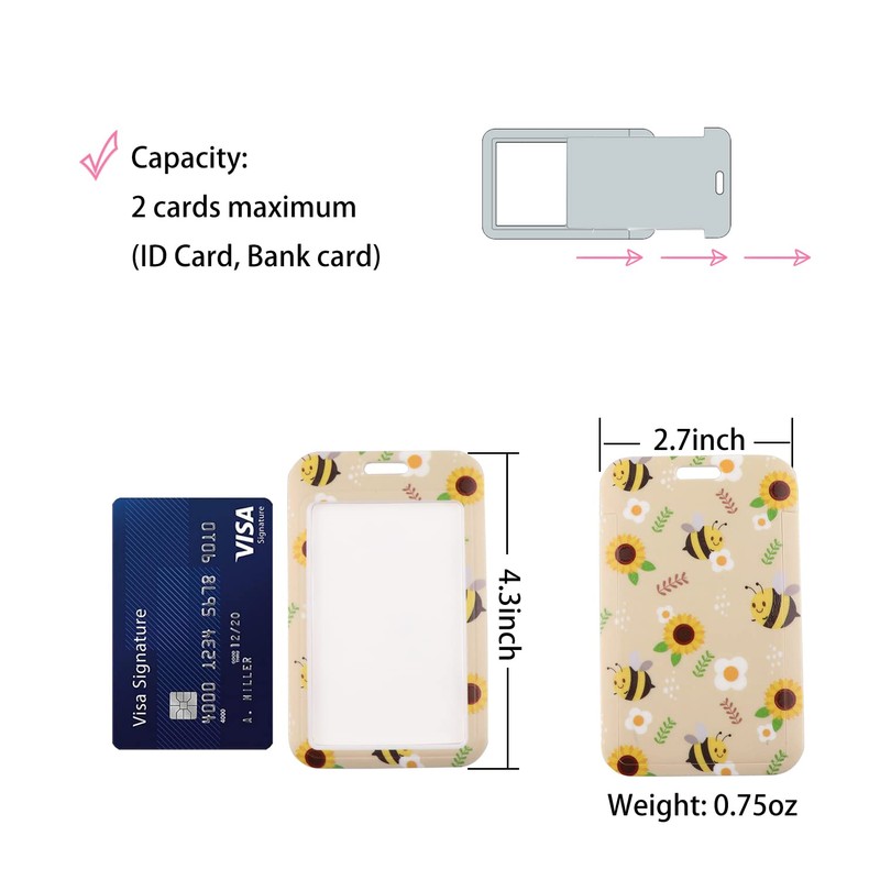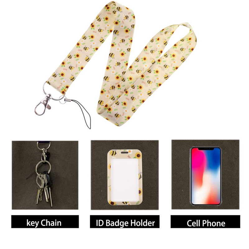 Cute Lanyard with Card Holder for ID Keys, Bee Lanyard Neck Strap with Hard Plastic Case