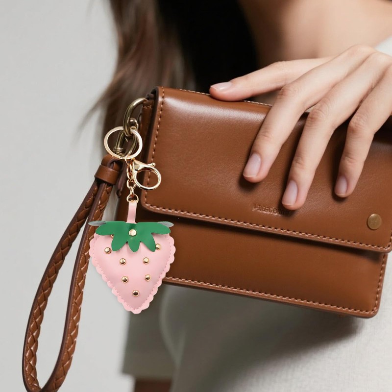 - 【Cute Strawberry Keychain】: This leather keychain blends fashion aesthetics using strawberries and rivets to give the keychain a more layered look, adding sweetness and creating a playful and fashionable style without losing feminine elegance.