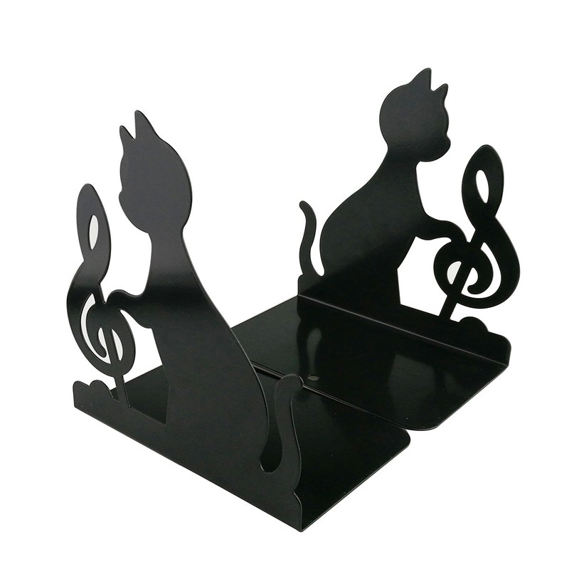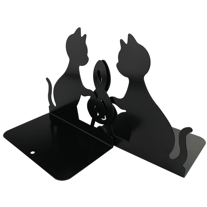 Cute Lovely Funny Lazy Cat Playing Music Nonskid Thickening Iron Library School Office Home Study Metal Bookends Book End (Music Note)