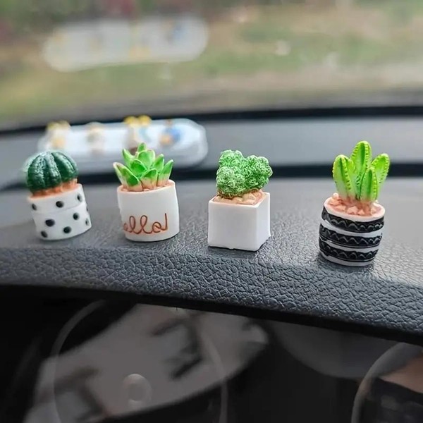 Cute Mini Succulent Resin Car Dashboard Decoration, Mini Plant Car Interior Decoration, Car Center Console Ornament