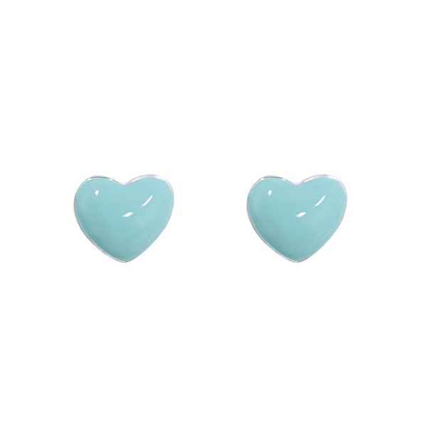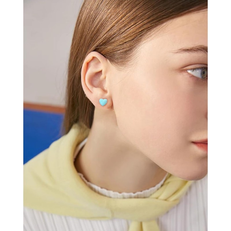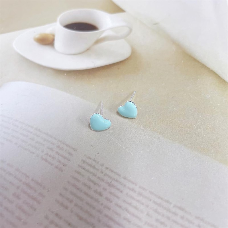 Cute Mint Green Enamel Heart Tiny Small Stud Earrings for Women Dainty Minimalist 925 Sterling Silver Hearted Love Mini Little Cartilage Tragus Studs Hypoallergenic for Sensitive Ear Fashion Jewelry