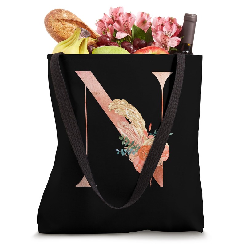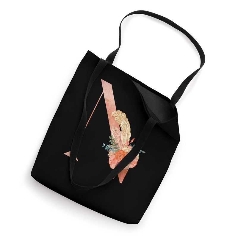 Cute Monogram Initial Coloured Letters Flowers Capital N Tote Bag