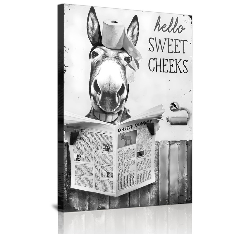 Cute Newspaper Animal Wall Art Black and White Canvas Printed Cabin Bathroom Decoration Bath Wall Picture Frameless (Ass,1 Piece-20 x 30 cm)
