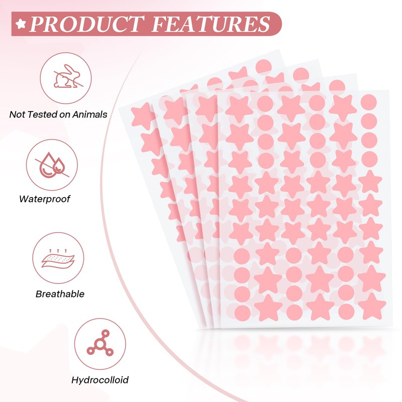 Cute Pink Star Patches For Face, Facial Scar Cover Star Stickers Patches, Star Concealer Stickers Mild Non-Irritating Breathable Waterproof Specification Size For Face (Round,Star, 3 Sizes /480 PCS)
