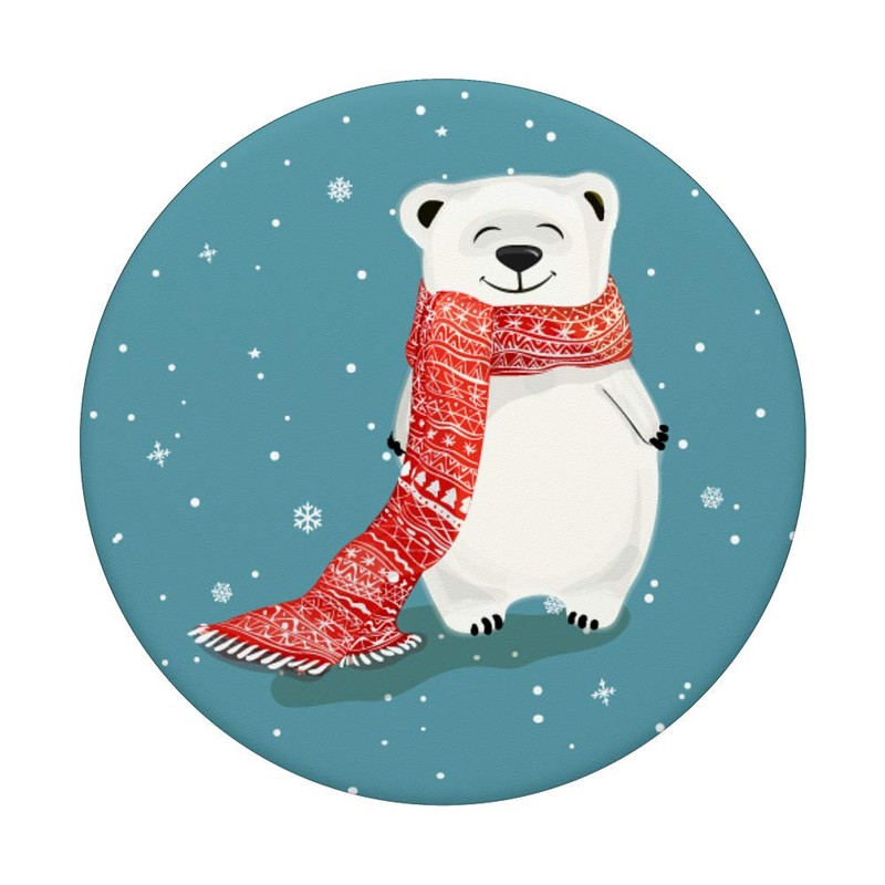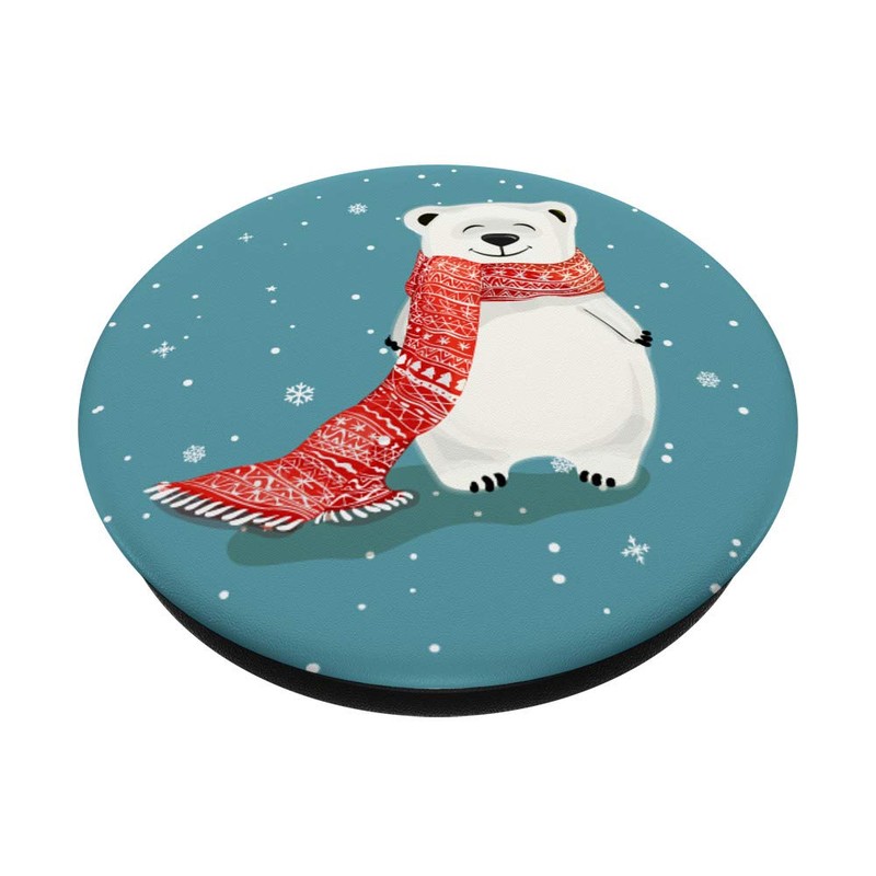 Cute Polar Bear Freezing In Winter Wearing Red Scarf Snowing PopSockets PopGrip: Swappable Grip for Phones & Tablets