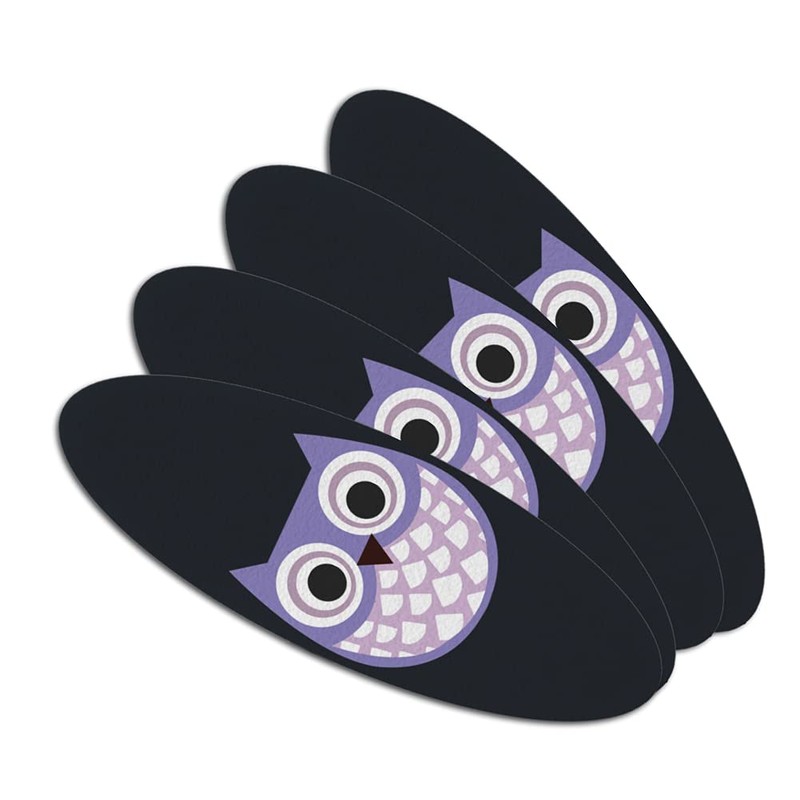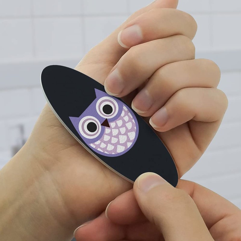 Cute Purple Owl Double-Sided Oval Nail File Emery Board Set 4 Pack