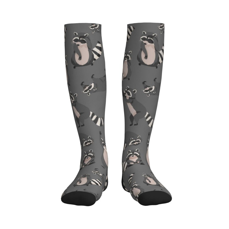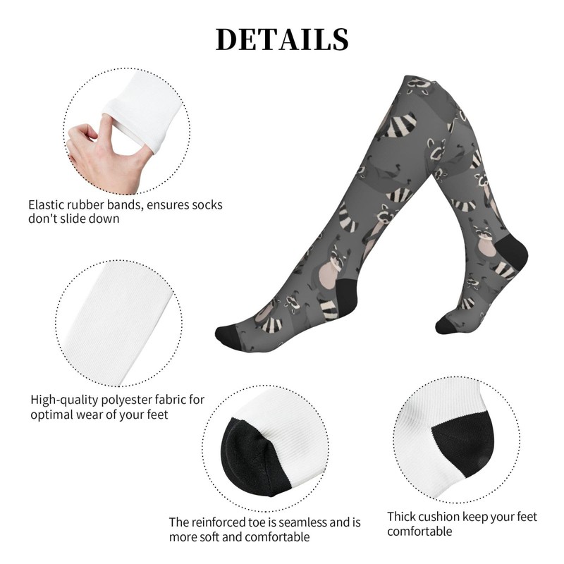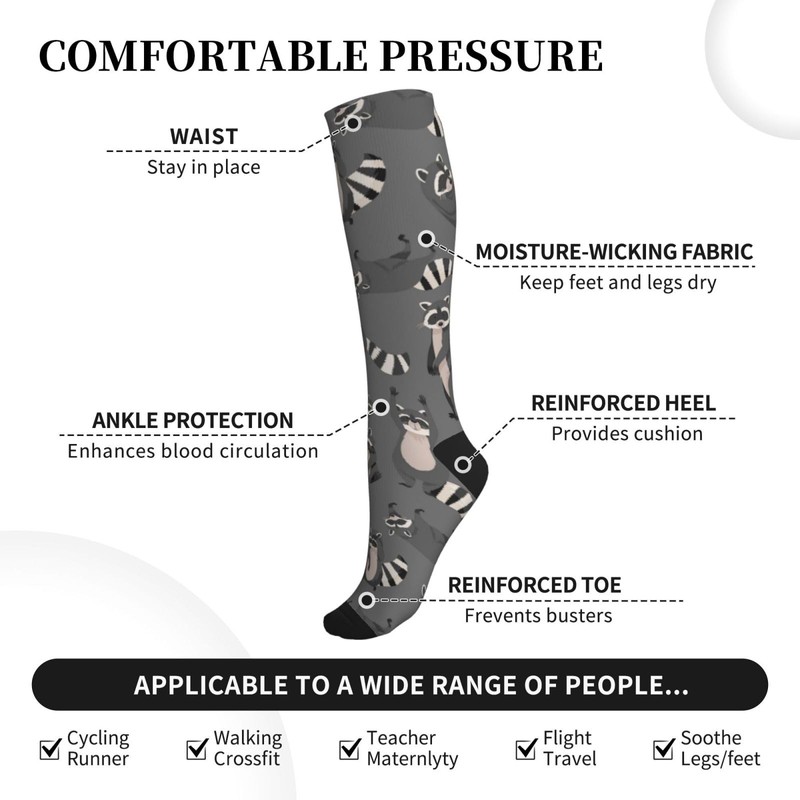 Cute Raccoon Grey Compression Socks Women And Men For Nurses Travel Pregnancy Recovery Running Athletic