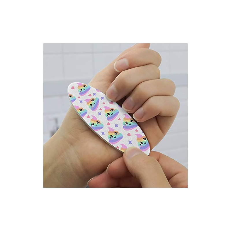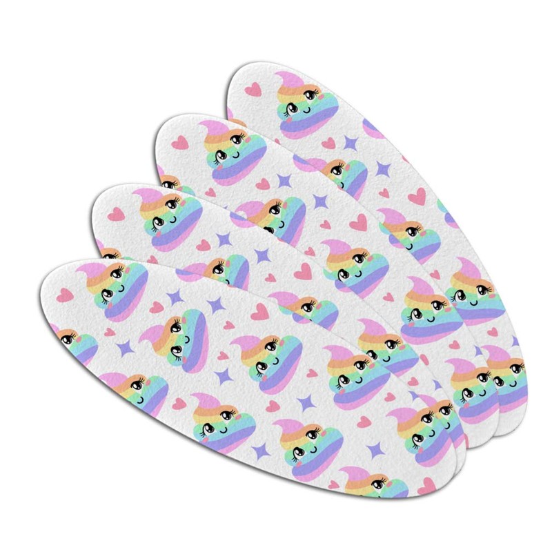 Cute Rainbow Poop Pattern Double-Sided Oval Nail File Emery Board Set 4 Pack