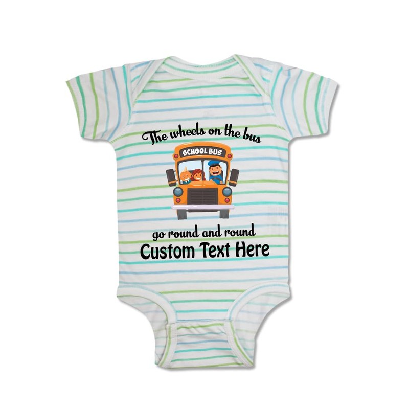Cute Rascals Custom Baby Bodysuit The Wheels on The Bus Go Round and Round Fu...