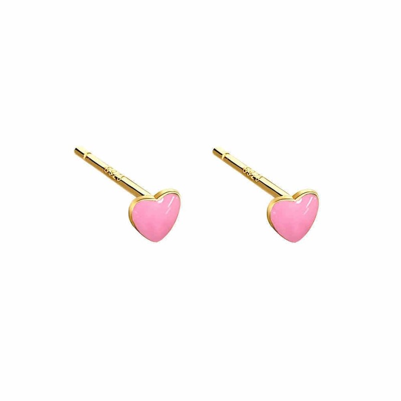 Cute Tiny Red Pink Enamel Heart Gold Plated Small Stud Earrings for Women Dainty Minimalist 925 Sterling Silver Love Mini Little Cartilage Tragus Studs Hypoallergenic for Sensitive Ear Fashion Jewelry 4mm (Pink)