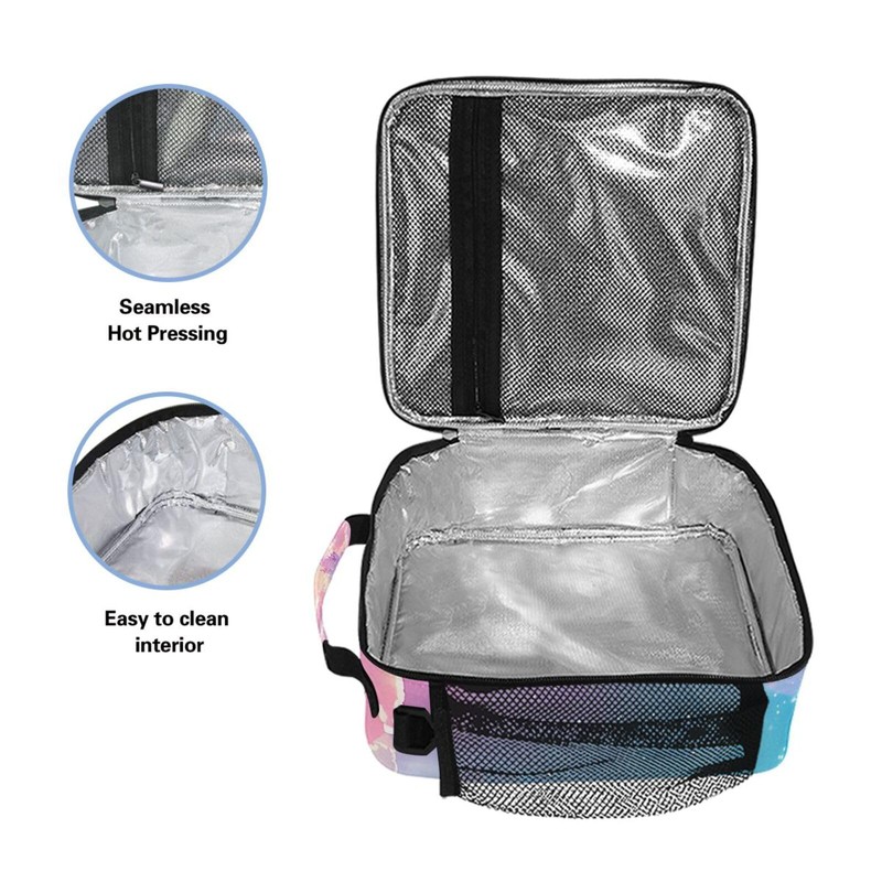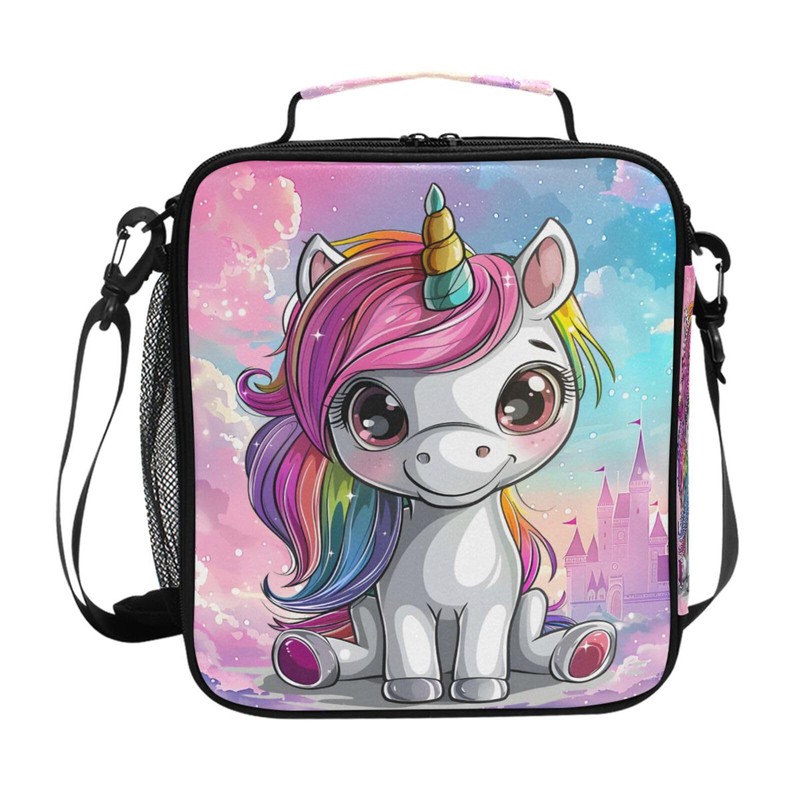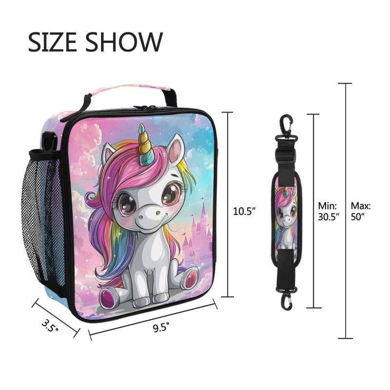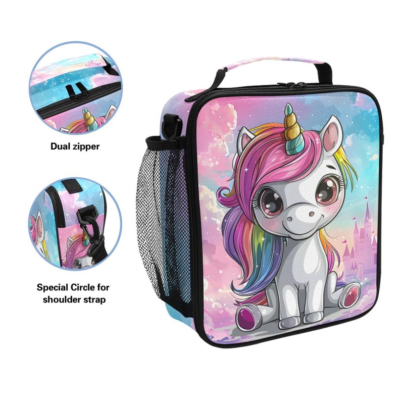 Cute Unicorn Rainbow Castle Lunch Box Insulated Lunch Bag Prep Kids Cooler Tote Freezable Shoulder Strap Waterproof Picnic Meal for School Office