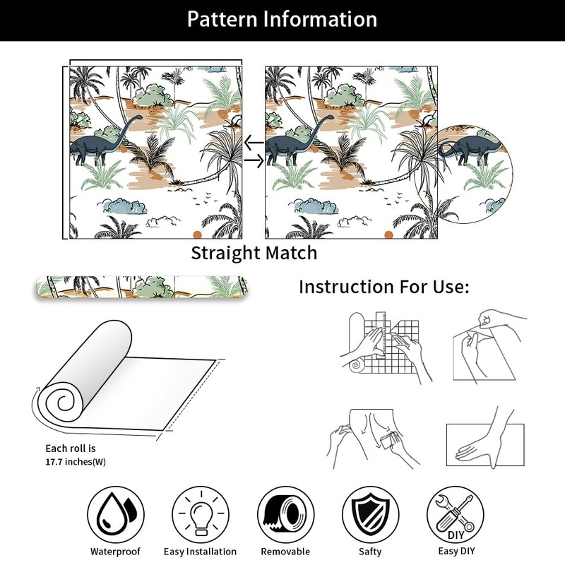 - 【 Peel and Stick Wallpaper Size 】:1 Roll = 17.3 inches wide x 118.1 inches long, each roll covers about 14.5 square feet. Material is high-quality PVC, find the correct pattern repeat first, then match directly, no overlapping, very easy for beginners. Tips:The edge pattern of the pvc material may shrink a little during the cutting process, which is normal