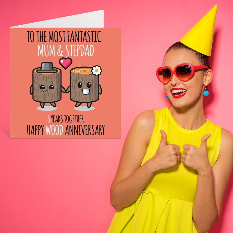• MAKE THEM SMILE WITH THIS CUTE ANNIVERSARY CARD: This exceptional quality anniversary card for her or him shows the design of a cute tree trunk couple with the words "To The Most Fantastic mum & Stepdad, 5 Years Together, Happy wooden Anniversary". If you are looking for cute anniversary cards then this card is bound to make them smile. This could also be for Boyfriend, Girlfriend, Partner, Husband, Wife, or Companion.