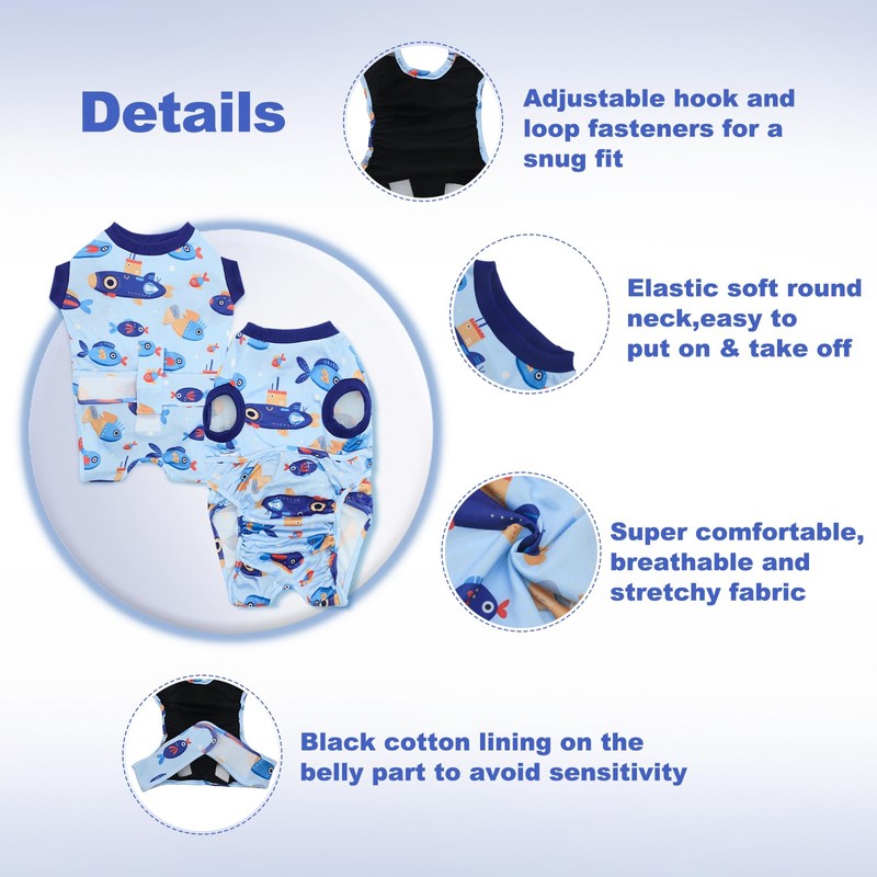 - Functional Dog Recovery Onesie: The dog surgical clothes is designed to protect pet's wounds/spots/incisions, bandages, skin help when your dog/cat is neutering or spaying, and to keep pet calm & basically stress-free. This dog cones alternative after surgery also covers wounds to deter licking, biting, or scratching.