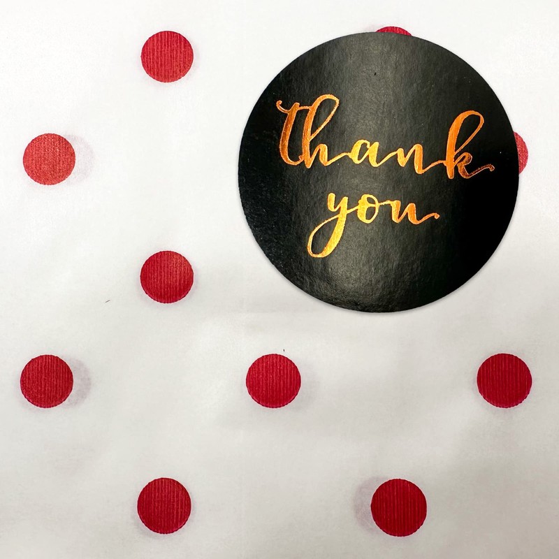 - Each bundle contains 100 flat paper gift bags and 100 pieces of circular Thank You stickers.