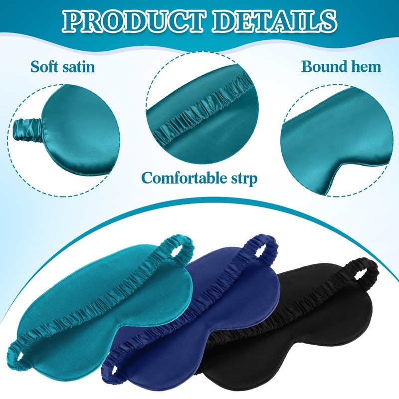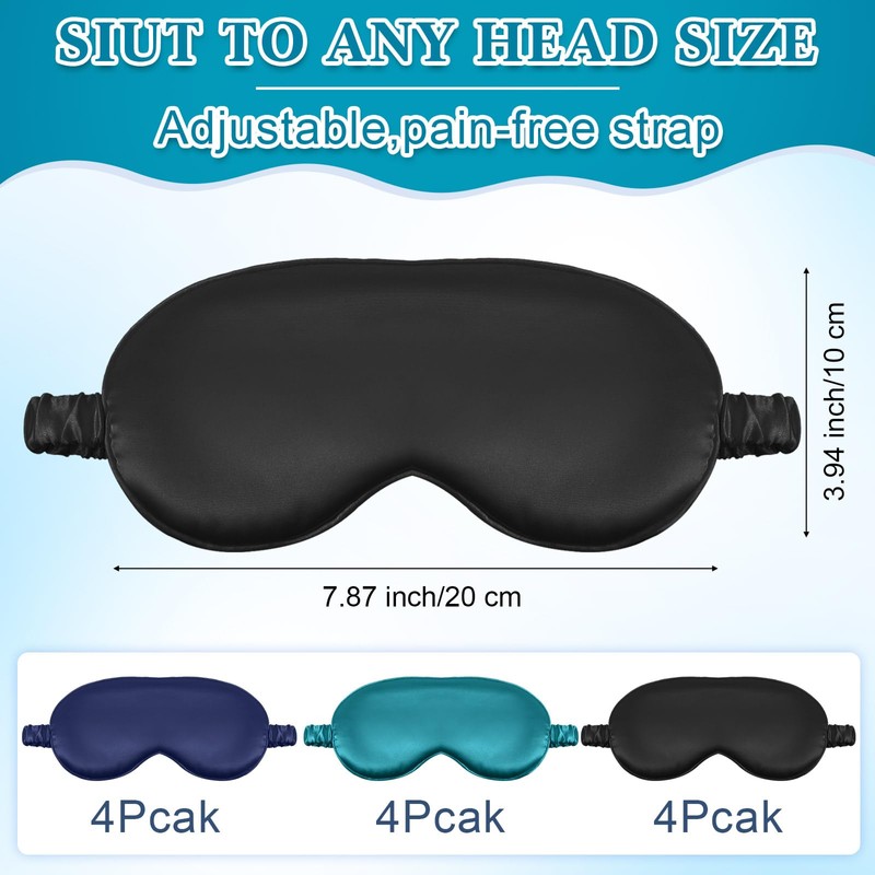- Package and Size: our package contains 12 silk sleeping masks in 3 colors: black, dark green and navy blue; Each piece measures 7.87 x 3.93 inches/20 x 10 cm; Rich colors and quantity are enough for your daily replacement and use