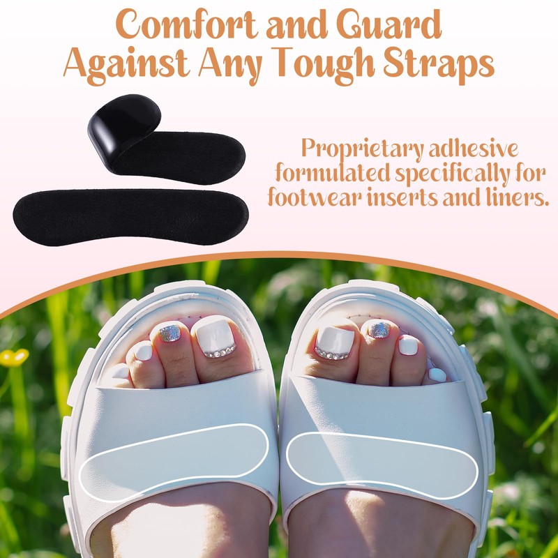 - Safe and Anti-sensitive Materials: sandal straps proprietary adhesives formulated for insoles and shoe linings, from soft leather to smooth fabric, anti slip pads for sandals are designed to reduce friction that can cause blisters and ulcers, creating a secure and comfortable fit