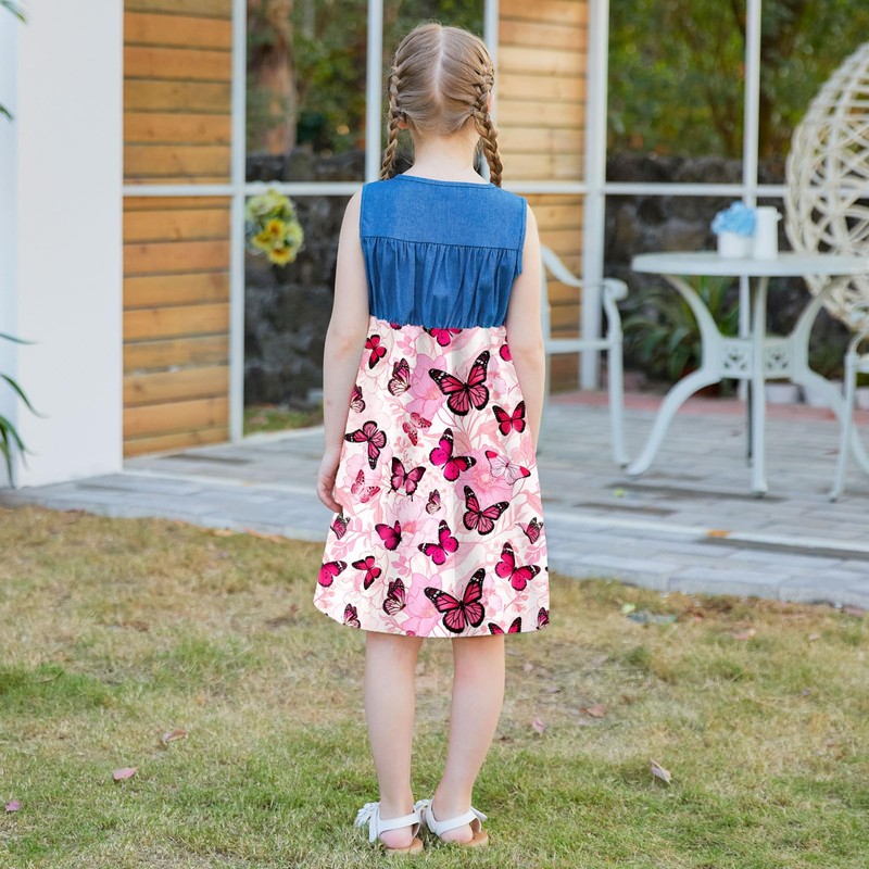 Cutemile 7-8 Years Girls Sleeveless Denim Tops Dresses Rainbow Unicorn Printing Skirts Twirl Sundress One Piece Swing Dresses Outfits Summer Frocks