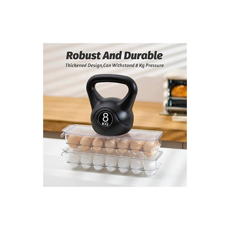 - [Premium Egg Holder for fridge] The egg Holder for fridge made of high-quality PET material, BPA-FREE and odorless. Not easy to bent and is durable for use. The egg cartons fit the slots well to avoid unstable and cracking while moving.