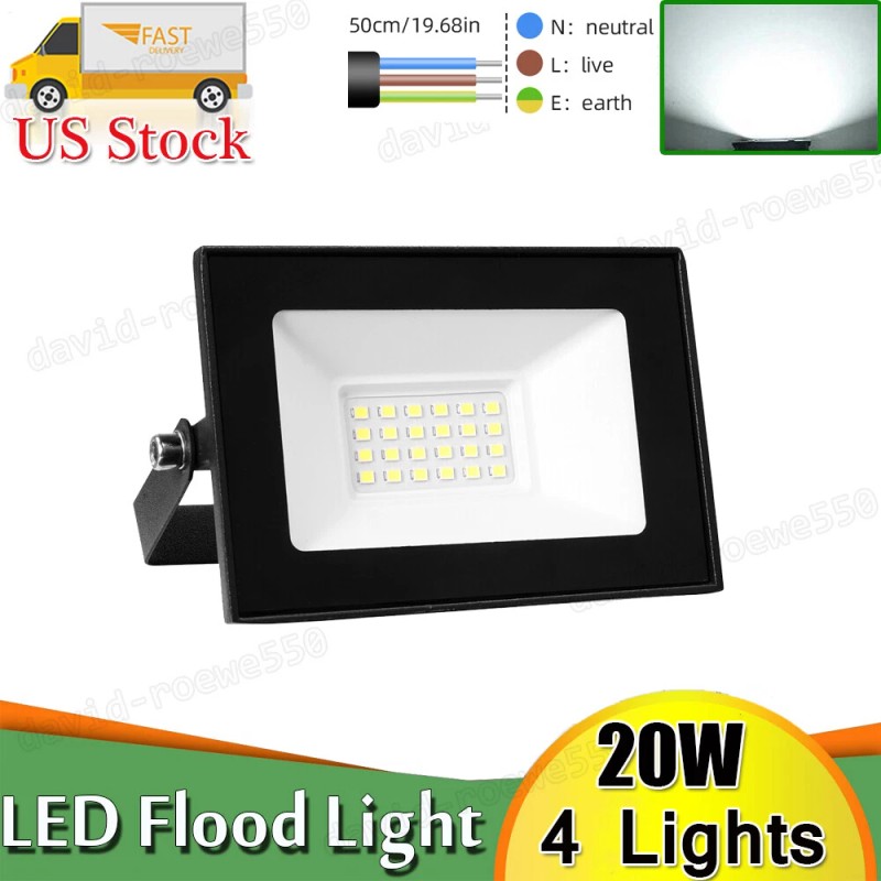 Cutever 4Pcs 20W LED Flood Light Garden Outdoor Lamp Yard Security Spotlight Cool White