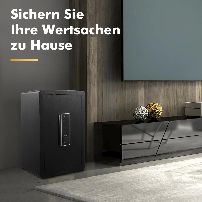 Safes Home Safes 4.2 Cub Large Safe with Steel Lock Box: Interior dimensions: 15.5 x 13.2 x 23.4 inches. The removable steel frame can be easily adjusted to different storage spaces as needed. Unlike other plastic inner cabinets, our cabinets are made of alloy steel, which is strong and sturdy, giving you more choices. 4.2 cub's large capacity safe can meet your daily storage needs, and is perfect for protecting your valuables and privacy, such as pistols, documents, passports, jewelry, etc. Safety Fireproof and Waterproof: Worried about keeping medicines, guns and other sensitive items away from curious children? Worried about protecting your valuable property from theft? Made of mild alloy steel, 55mm extra-thick alloy anti-screw steel door, 7 live lock bolts and hidden hinges provide physical protection to prevent forced entry Upgraded Programmable Keypad: Electronic programmable digital lock uses 3-8 digit combination and backup key. Makes it easy to open the safe, and you don't have to worry about hiding and tracking the key. It can be well kept away from children. Fireproof Safe Box: Our fireproof safe is made of solid cold rolled steel with flame retardant coating, with excellent high temperature performance, can last for 1 hour at 1700°F. You can use it to store cash, jewelry, important documents, and protect your valuables from fire, hurricanes and earthquakes Double Anti-Theft Alarm System: All illegal access is denied! ①Wrong Password Alarm: Enter the wrong password 3 times, the system will lock and alarm for 60 seconds. ②Vibration Alarm: If someone tries to move it when it is locked, the alarm will also sound. Enter the correct password to stop the alarm Specifications Product size: W: 32cm x L: 38cm x H 60cm Lock diameter: 28mm Door thickness: 82mm Three ways to unlock: Password + knob Key + knob Battery box + password + knob Packing list 1x safe 2x keys 2x expansion screws 1x external power supply (excluding batteries) 1x instruction manual |