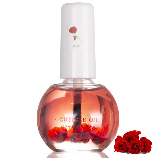 Cuticle Oil, Nail Oil Rose Cuticle Oil with Real Flowers - 15 ML Moisturizing Nail Treatment for Dry Nails - Strengthens, Repairs, and Revitalizes Cuticles