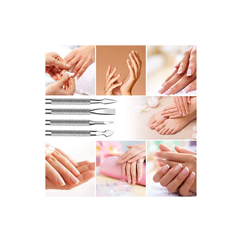- 【Easy to Use】You can easily use our manicure tools to do your own nails by yourself. Cuticle pusher flat head: push down cuticles around nails or push the polish gel residue after removing; Cuticle pusher curved head: cut or scrape away dead cuticle on one end; Triangle nail polish scrapper head: remove gel nail polish.